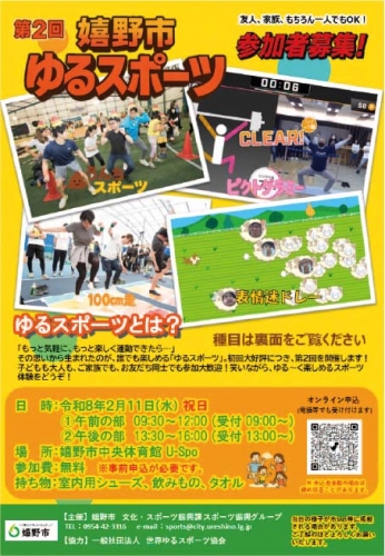 年齢、運動経験、障害の有無に関わらず、だれでも参加できる「ゆるスポーツ」を開催!100cmをいかに遅く走るかを競う「100cm走」や、表情を使った個人メドレー「表情迷ドレー」など、小さな子ども連れでも安心して楽しめる“ゆるさ”が魅力。家族でも、友達でも、もちろん1人でも大歓迎!休日のリフレッシュに、親子の思い出づくりに、ちょっと体を動かしてみては♪