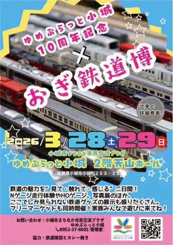 開館10周年を迎える小城市の「ゆめぷらっと小城」に鉄道模型がやってくる!自分で動かせる走行体験や写真展、ここでしか見られない鉄道グッズの展示などワクワクするコンテンツが満載。さらに、ハンドメイド雑貨の販売やフリーマーケットも同時開催。鉄道好きも、お買い物好きも、家族連れもみんなで楽しめる♪
