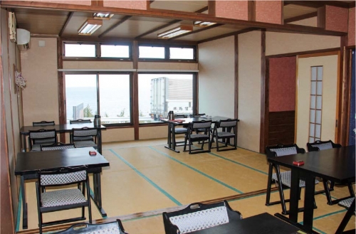 落ち着いて食事ができる畳の小上がり席と海の絶景が見える座敷席完備