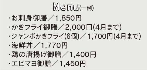 国道207号沿い、通称“かき焼き街道”の海沿いに面する食事処