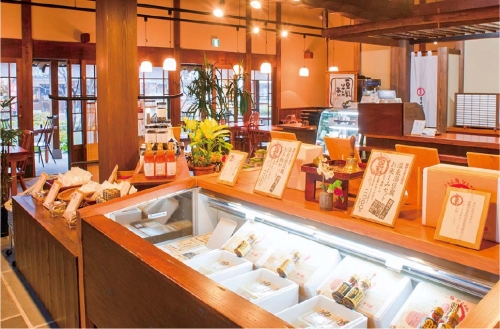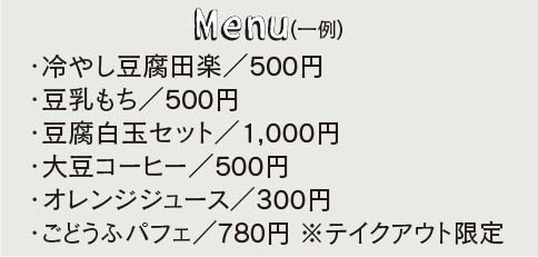 店内には温泉湯豆腐をはじめ、冷やし豆腐田楽や平川屋限定ダレ、豆乳もち4種の詰め合わせなどの物販コーナーも