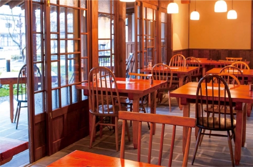 古民家の古材を使ったシックな雰囲気のお店。店舗前と道を挟んで第2・3駐車場がある