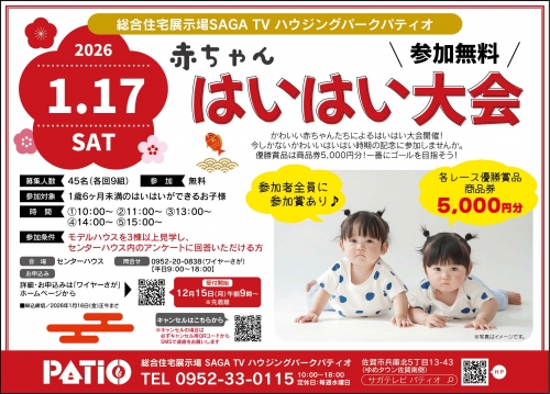 総合住宅展示場 SAGATV ハウジングパークPATIO にて『赤ちゃんはいはい大会』を開催します!
